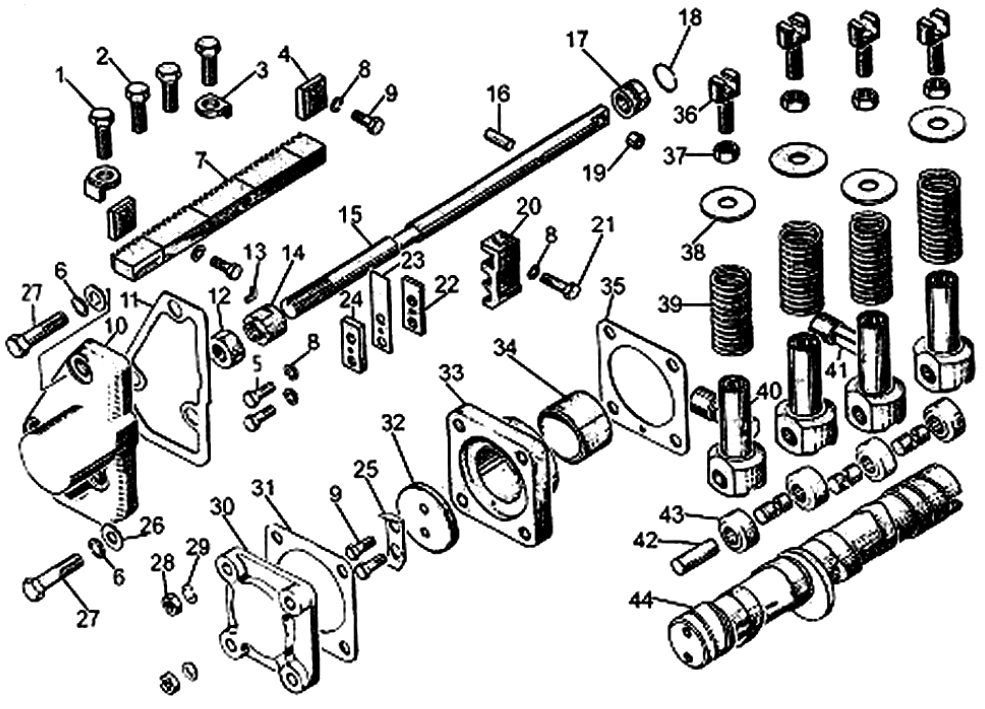 Механизм привода плунжеров топливного насоса на Т10М / Б10М