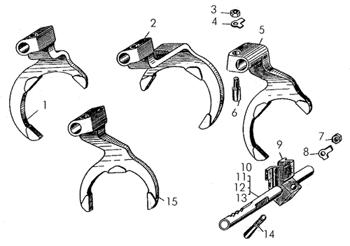 Валики, вилки переключения передач, детали крепления