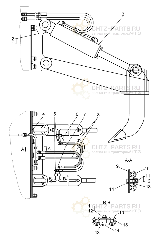 Установка гидроцилиндров на рыхлитель 10 Н2 для Б10М