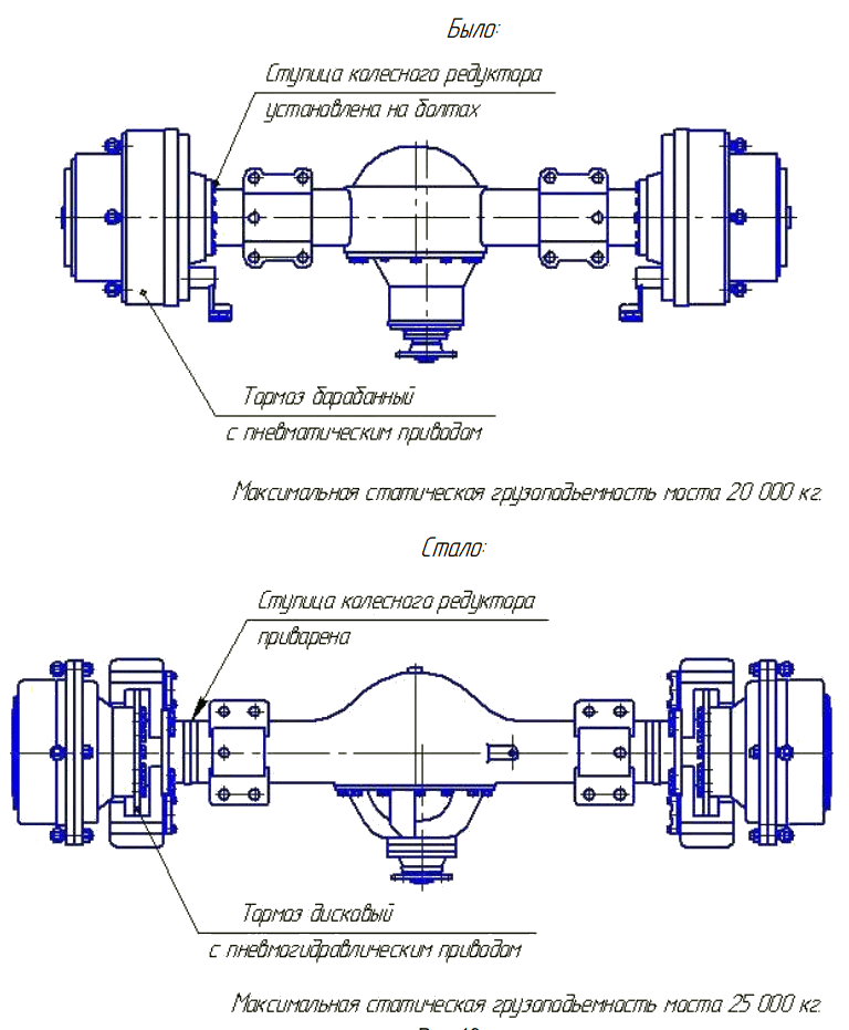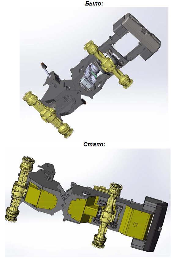 Для удобства в эксплуатации и снижения трудоемкости при демонтаже заднего моста изменена конструкция крепления заднего моста для возможности его демонтажа без снятия двигателя.
