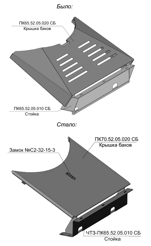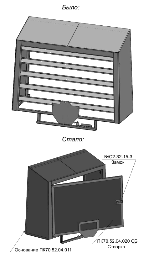 Для упрощения конструкции, снижения металлоёмкости, повышения удобства обслуживания убраны газовые упоры, старые замки сложной конструкции заменены на новые покупные, введена новая стойка.