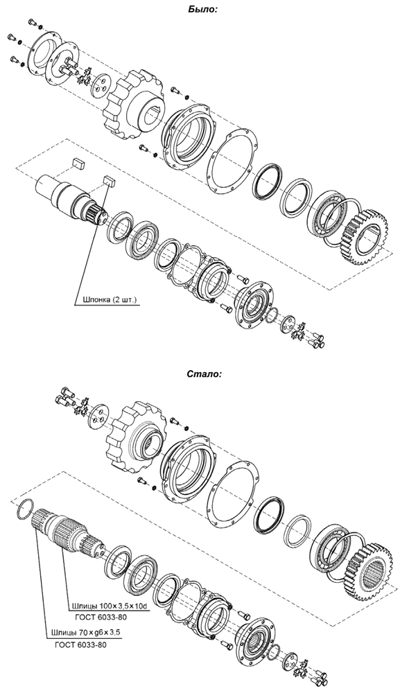 Замена шпоночного соединения на шлицевое