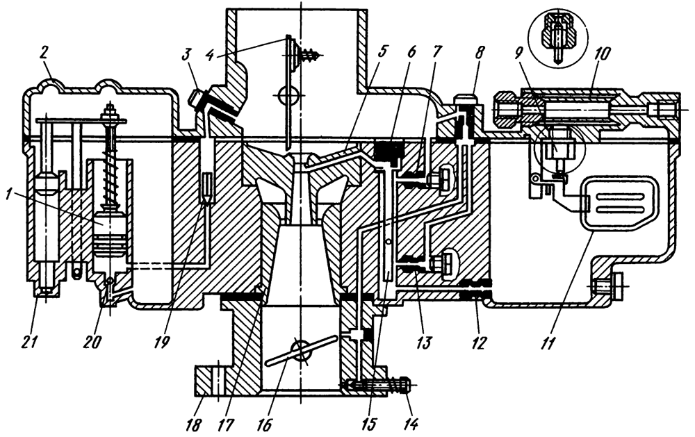Если нарушится нормальная работа карбюратора, что чаще всего бывает из-за засорения его жиклеров и каналов, необходимо вывернуть резьбовые пробки и продуть каналы сжатым воздухом. В крайнем случае надо снять и разобрать карбюратор, промыть его детали в бензине. Нельзя очищать отверстия жиклеров и каналов проволокой.