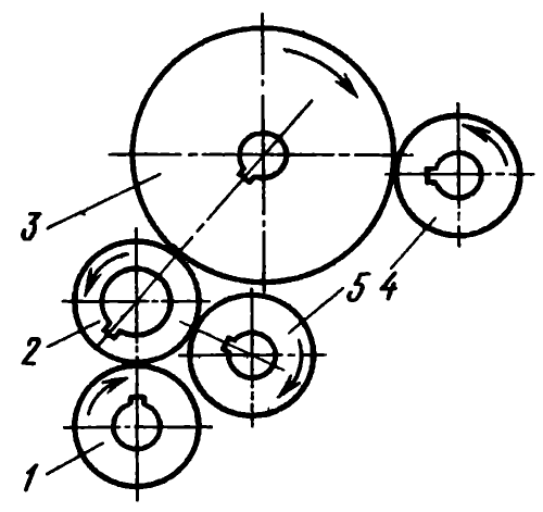 На валу редуктора смонтирован механизм включения, имеющий шестерню 15 со спиральными зубьями, вводимую рычагом при пуске ее в зацепление с венцом маховика дизеля. Через эту шестерню пусковой двигатель прокручивает коленчатый вал дизеля. Шестерню в зацеплении с венцом маховика удерживают две защелки 17, сжимаемые пружиной 19. Как только дизель заведется, защелки под действием центробежной силы расходятся, и шестерня механизма включения автоматически,выходит из зацепления с венцом маховика дизеля благодаря давлению зубьев венца маховика на спиральные зубья шестерни и пружины 16 через толкатель 21.